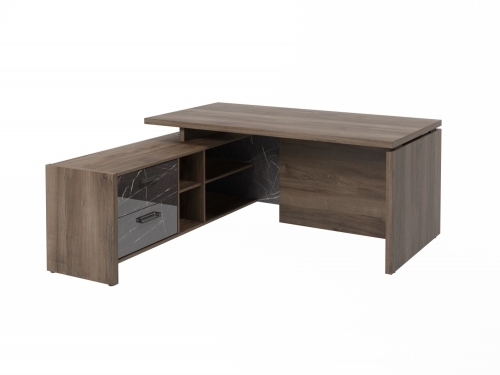 Стол с опорной тумбой FB-117L.GG (L) Орех Пацифик Табак/Камень Пьетра Гриджиа черный