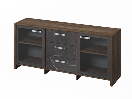 Тумба трехсекционная с 2 дверьми FB-13-02.G. Орех Пацифик Табак/Камень Пьетра Гриджиа черный [1111]